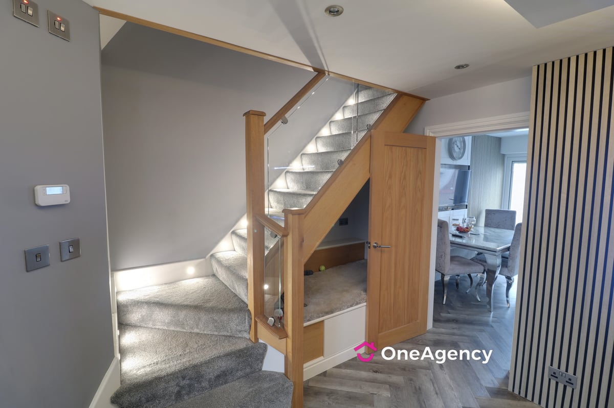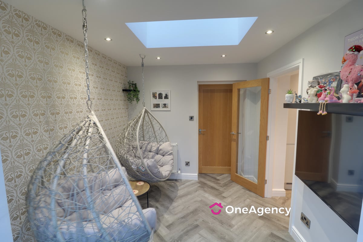 A stunning 2/3 bedroom link detached home which has undergone an extensive programme of renovation by the present vendors, now offering stylish and high-quality living accommodation throughout. The property also benefits from a superb summer house/bar area, perfect for entertaining. To the front is a block paved driveway providing ample off-road parking, while the landscaped rear garden features Indian stone paving and low-maintenance artificial turf, creating an ideal outdoor space for families and social gatherings. The accommodation is well presented and comprises a welcoming living room and a modern open-plan dining kitchen. The ground floor extension provides a versatile additional reception room, currently used as a sitting room/snug, but offering excellent potential for use as an occasional third bedroom, home office or guest space if required. There is also an integral garage, presently utilised as a useful utility area. To the first floor are two well-proportioned bedrooms, including a superb master bedroom with en-suite facilities, along with a further bedroom and a contemporary family bathroom. Viewing is essential to fully appreciate the flexible 2/3 bedroom layout, high standard of finish and excellent outdoor amenities on offer.